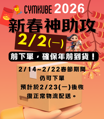 感謝您對 CYMKUBE 的支持。為確保您能在農曆春節前收到訂購之商品,請參考以下春節期間物流配送調整說明: