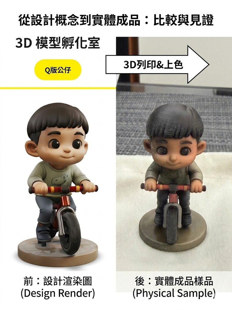 這個預覽的目的是讓你在下單前,就能看到公仔的大致樣貌 —— 姿勢、表情、配色、整體風格。