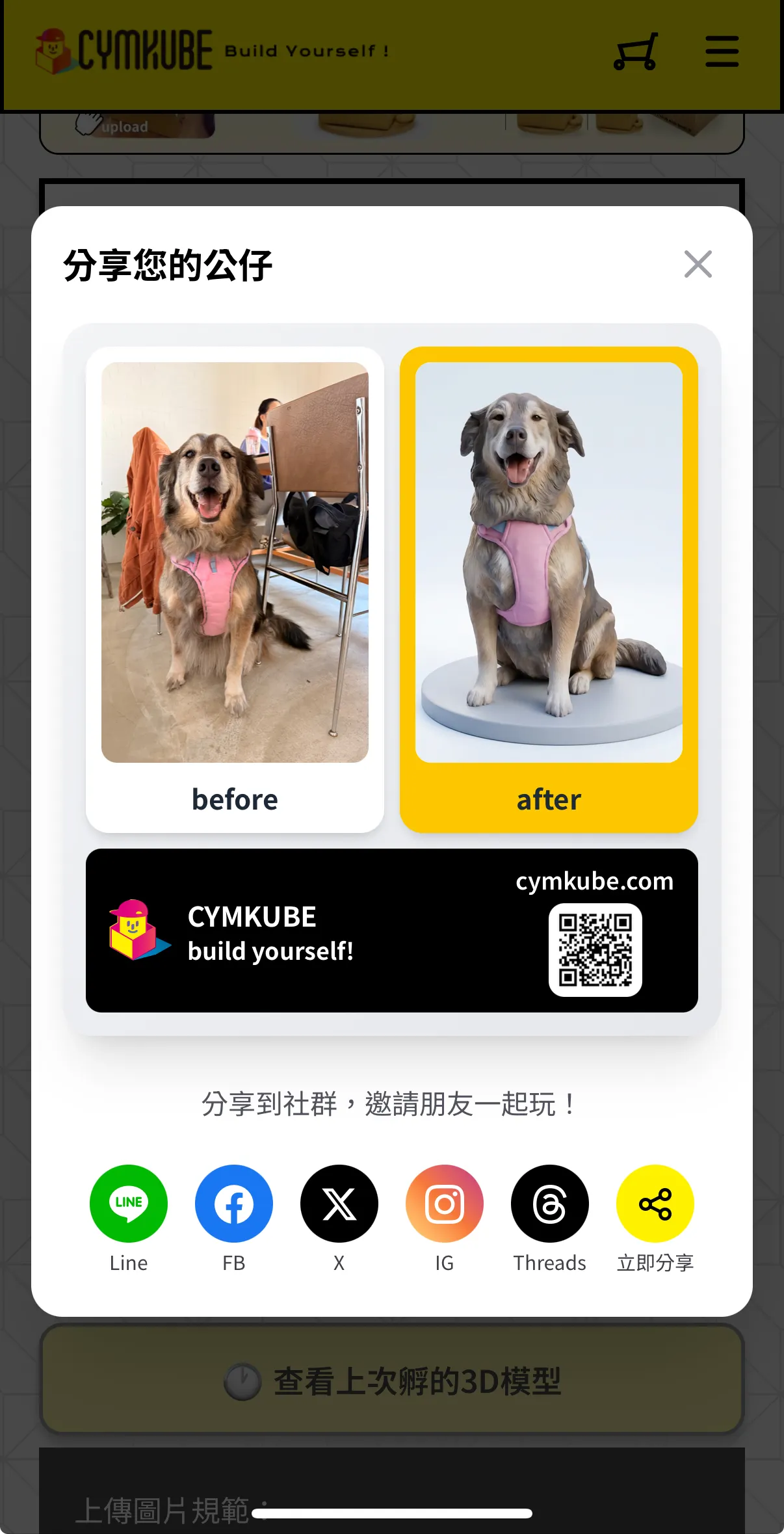 上傳照片開始製作自己的實體公仔 https://cymkube.com/