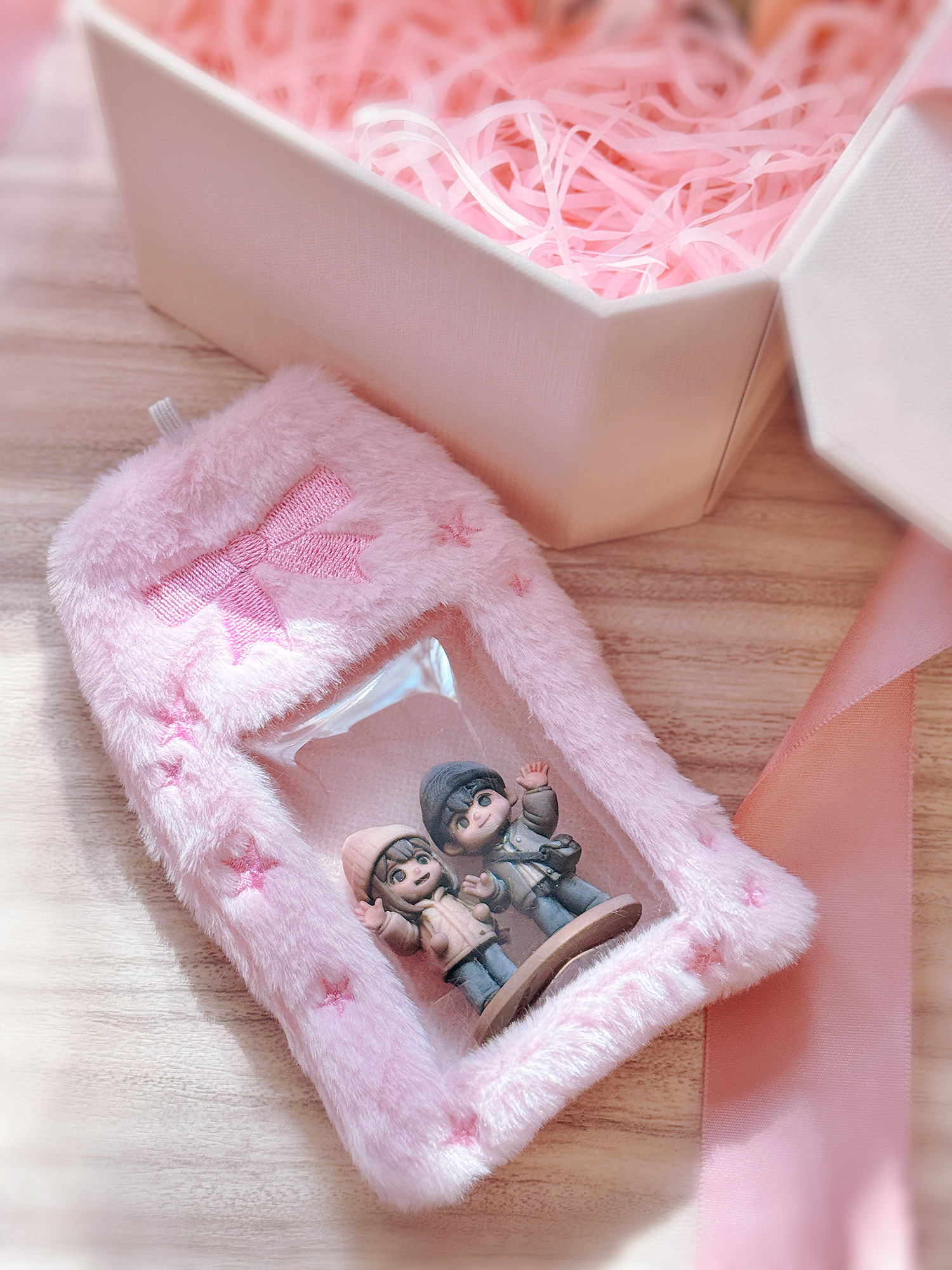 柔軟絨毛包覆搭配透明視窗設計,可以放公仔、放娃、也可以放證件!隱藏式開口, 無拉鍊設計, 輕鬆放入公仔OK滿滿的多巴胺氛圍,掛在包上、手機掛繩、鑰匙圈都很適合款式與尺寸蝴蝶結粉色款 / 幸運草綠色款:商品尺寸:約 9.5 × 15.5 cm(長 × 寬)